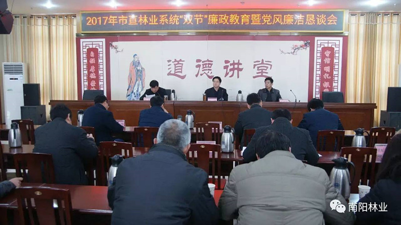 2017年元旦将至,根据市纪委统一部署,12月30日,市直林业系统2017年"双节"廉政教育暨党风廉洁恳谈会召开。会上,局党组书记、局长赵鹏就如何贯彻落实市六次党代会精神,如何打造我市的绿水青山,绘就林业的美好蓝图,为市直林业系统干部上了一堂廉政党课。市预防腐败局办公室主任王满坡同志到会指导并做出了重要讲话。