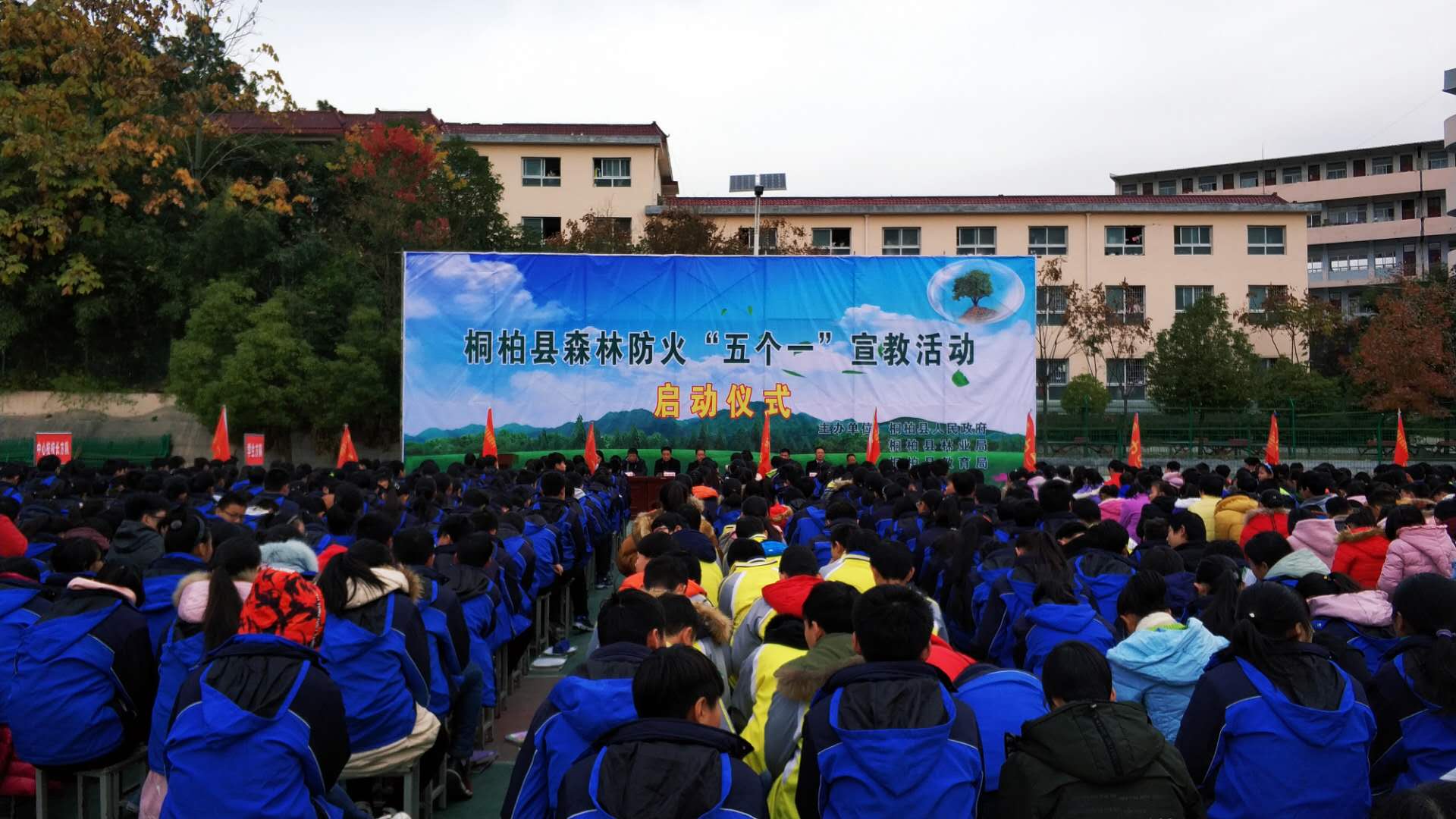 11月22日,桐柏县政府举行森林防火“五个一”宣教活动启动仪式。县政府副县长陈晓鹏,市林业局副局长周明金,县林业、教育及有关乡镇、学校负责人,育英学校师生共1000余人参加了活动。